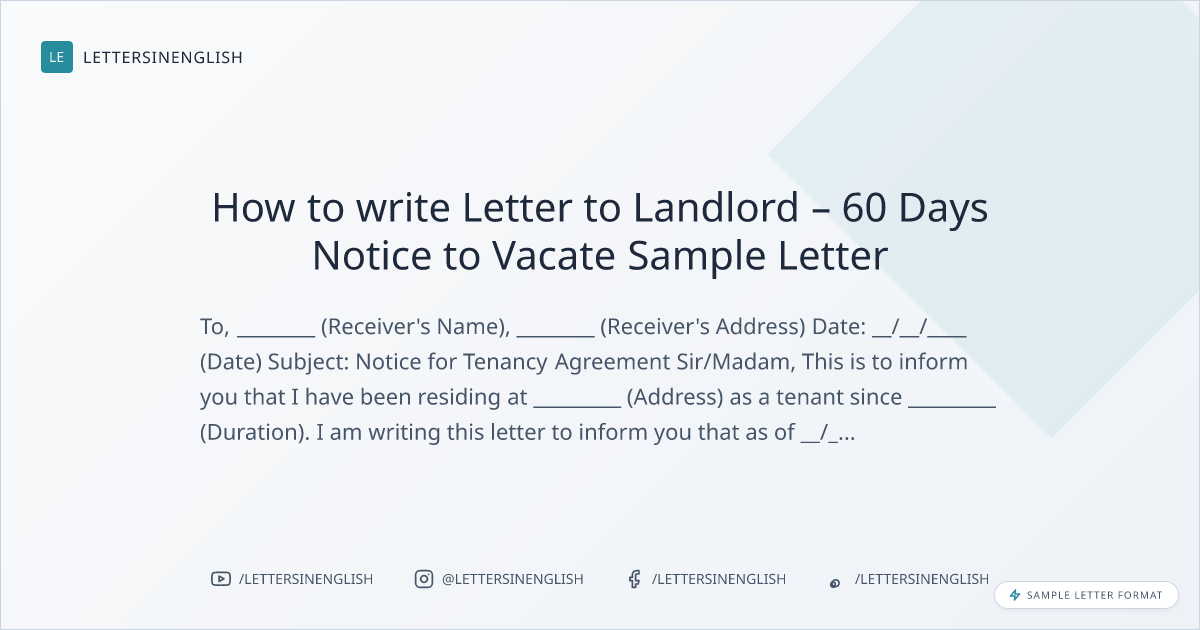LETTERSINENGLISHHow to write Letter to Landlord – 60 Days Notice to Vacate Sample Letter
