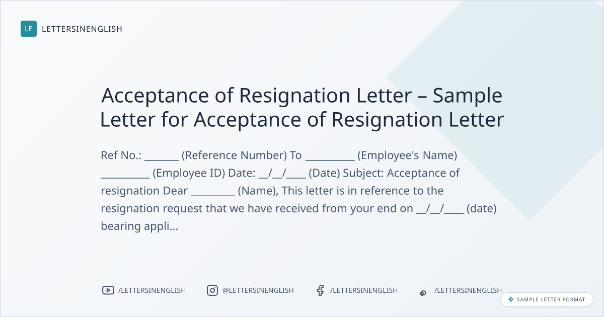 Acceptance of Resignation Letter – Sample Letter for Acceptance of Resignation Letter