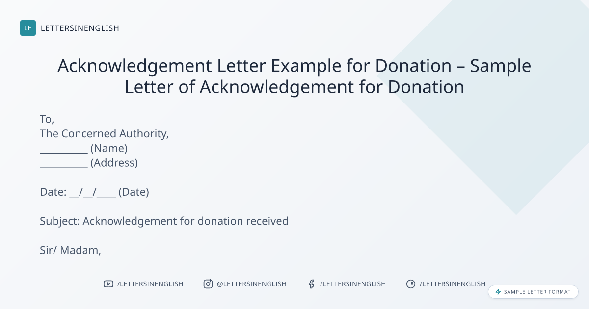 I am __________ (name) writing this letter on behalf of ________ (mention company/ organization – name) in reference to the donation received from your end in the name of ________ (mention name of the donor) bearing transaction number ________ (mention) amounting _______ (amount).