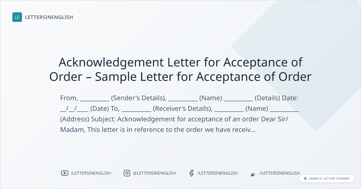 Acknowledgement Letter for Acceptance of Order – Sample Letter for Acceptance of Order