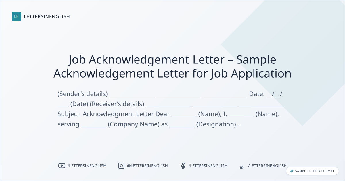 Job Acknowledgement Letter – Sample Acknowledgement Letter for Job Application