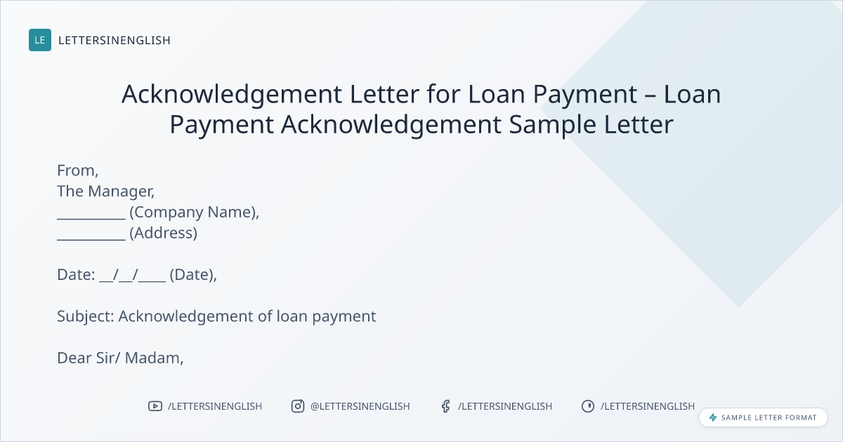 Acknowledgement Letter for Loan Payment – Loan Payment Acknowledgement Sample Letter
