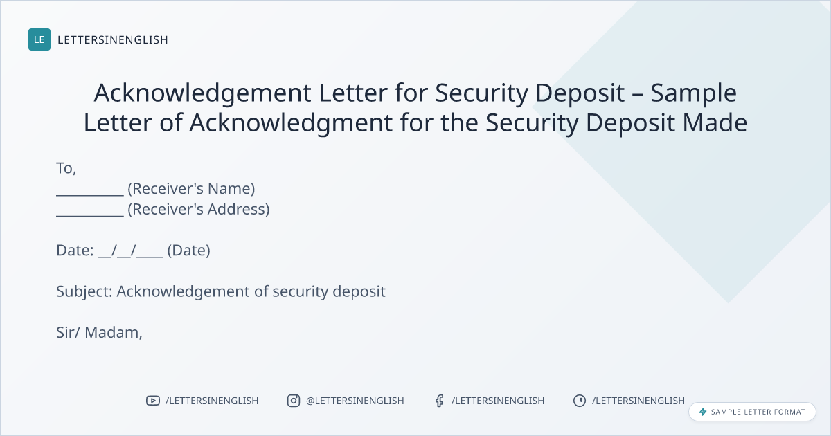 Sample Letter of Acknowledgment for the Security Deposit Made