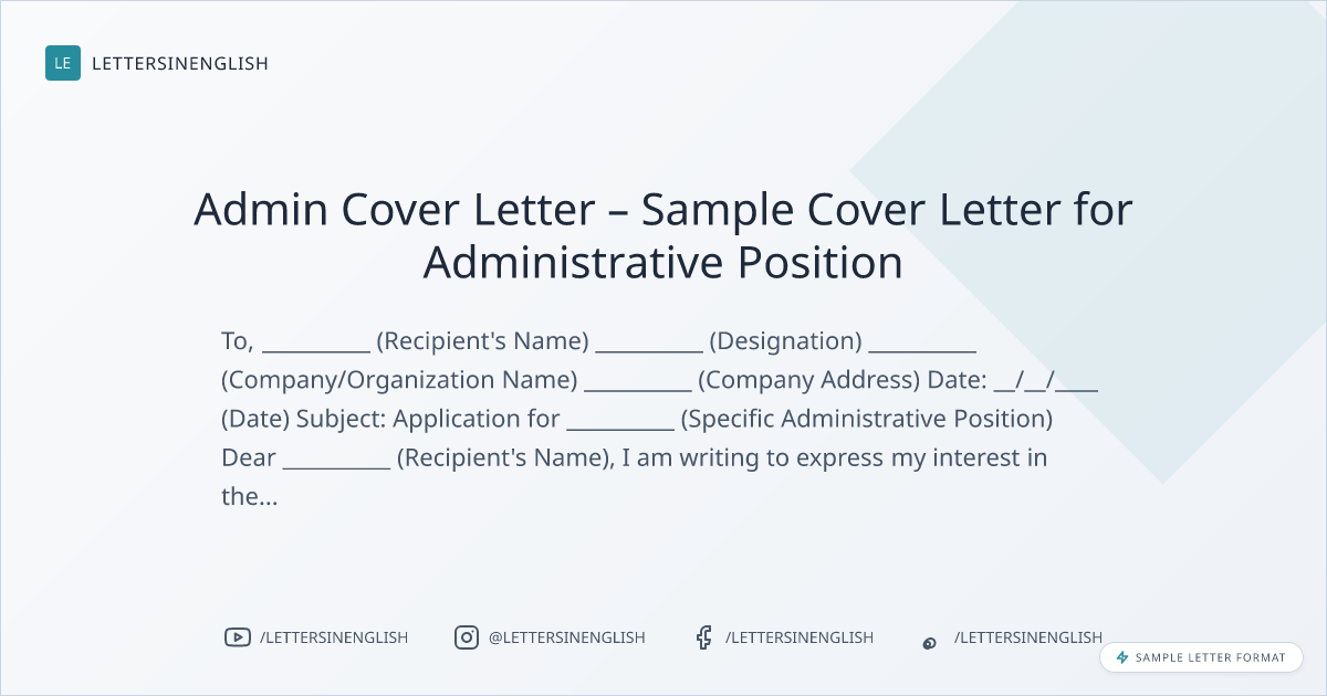 Admin Cover Letter – Sample Cover Letter for Administrative Position
