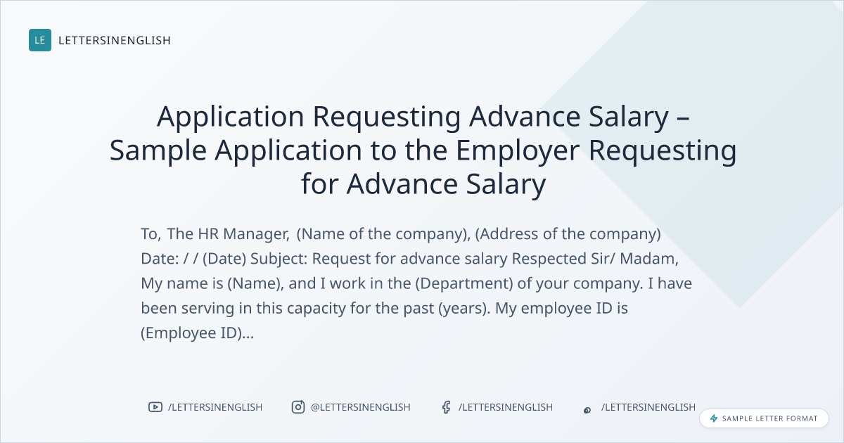 Application Requesting Advance Salary – Sample Application to the Employer Requesting for Advance Salary