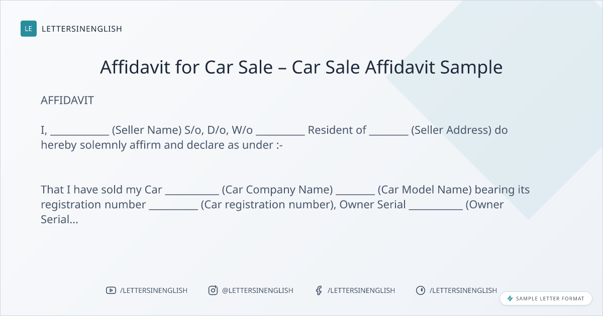 Car Sale Affidavit Sample