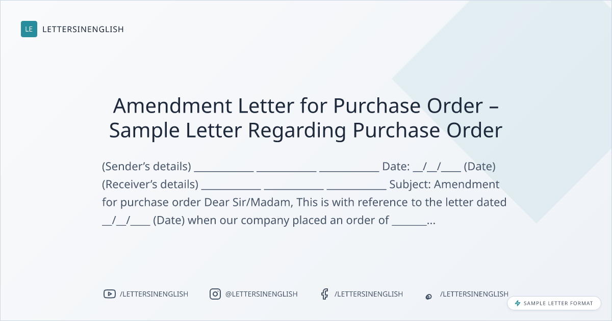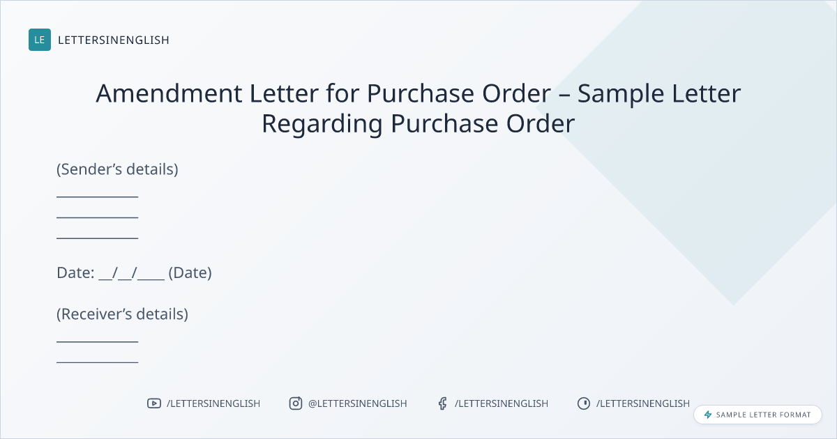 Amendment Letter for Purchase Order – Sample Letter Regarding Purchase Order