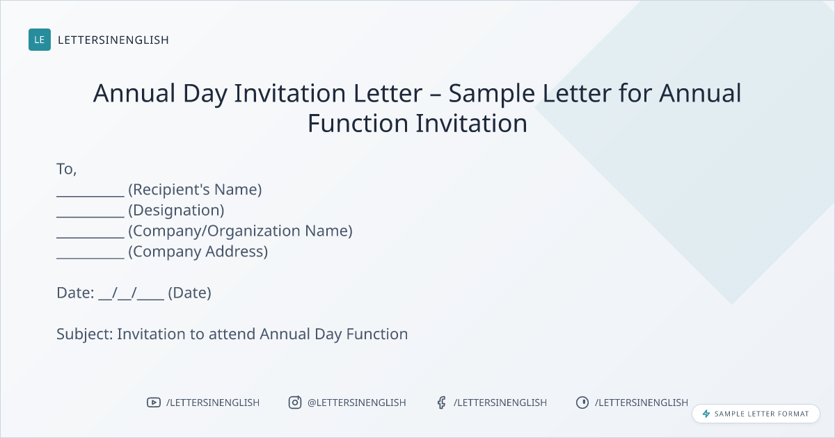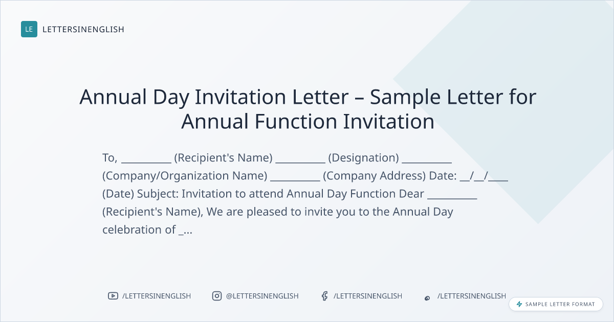 Annual Day Invitation Letter – Sample Letter for Annual Function Invitation