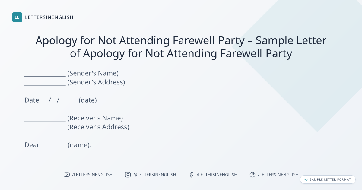 Apology for Not Attending Farewell Party – Sample Letter of Apology for Not Attending Farewell Party
