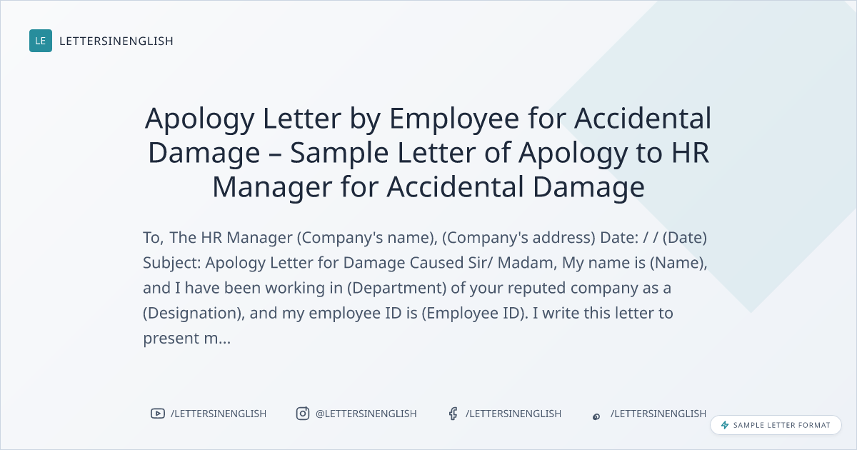 Apology Letter by Employee for Accidental Damage – Sample Letter of Apology to HR Manager for Accidental Damage