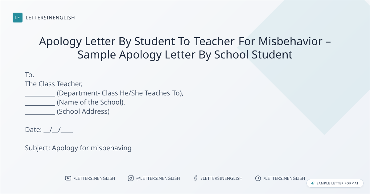 Apology Letter By Student To Teacher For Misbehavior – Sample Apology Letter By School Student