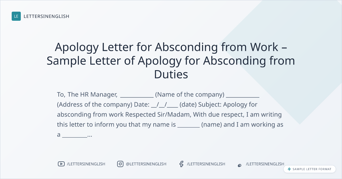 Apology Letter for Absconding from Work – Sample Letter of Apology for Absconding from Duties