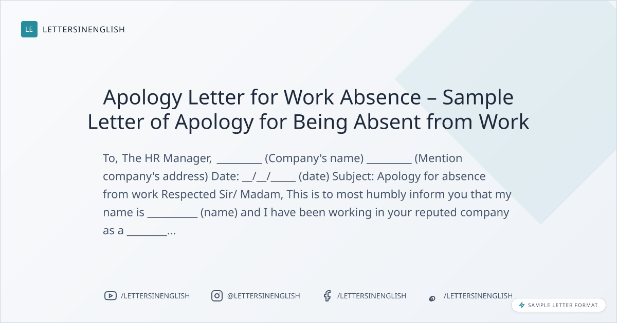 Apology Letter for Work Absence – Sample Letter of Apology for Being Absent from Work