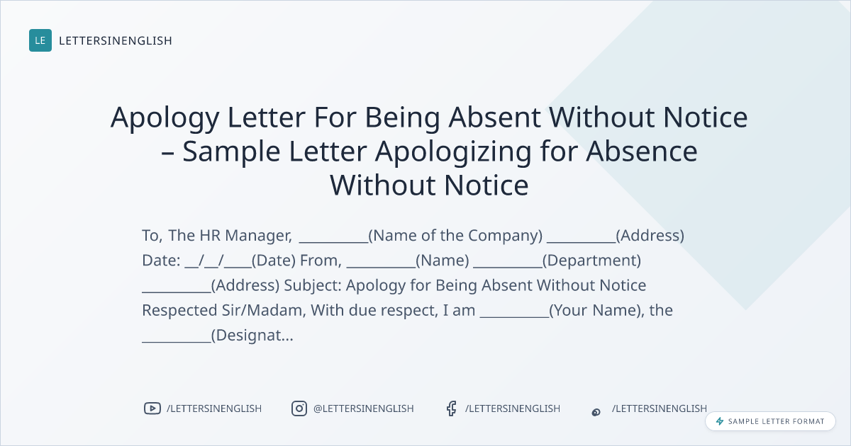 Apology Letter For Being Absent Without Notice – Sample Letter Apologizing for Absence Without Notice
