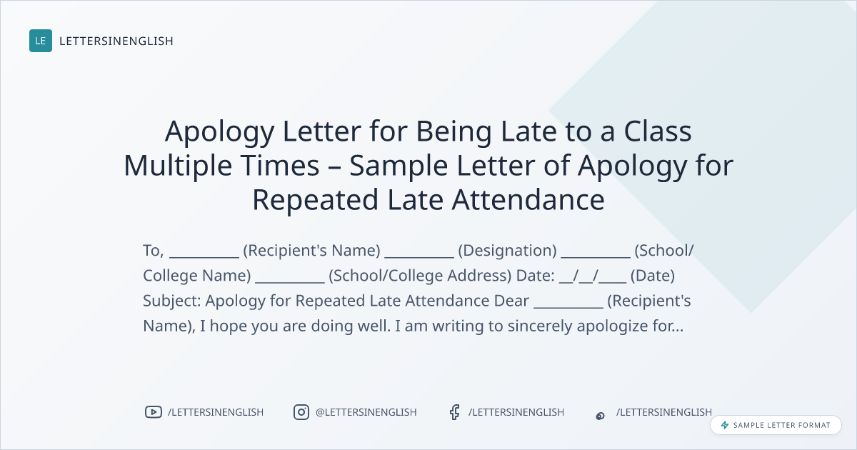 Apology Letter for Being Late to a Class Multiple Times – Sample Letter of Apology for Repeated Late Attendance