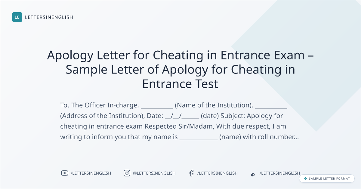 Apology Letter for Cheating in Entrance Exam – Sample Letter of Apology for Cheating in Entrance Test