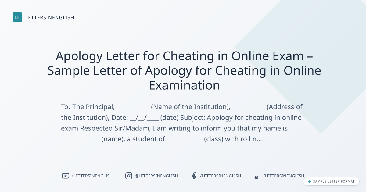 Apology Letter for Cheating in Online Exam – Sample Letter of Apology for Cheating in Online Examination