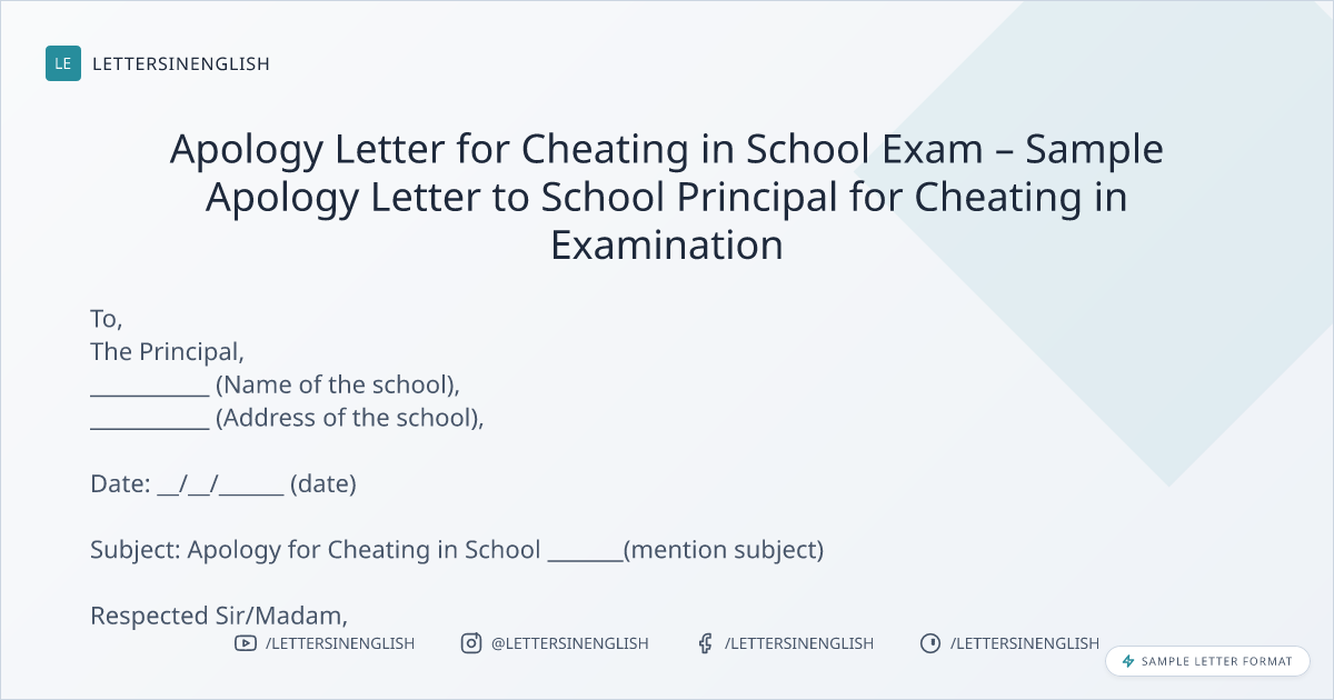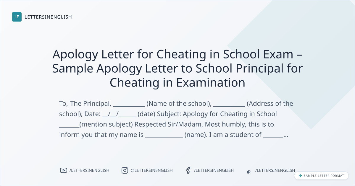 Apology Letter for Cheating in School Exam – Sample Apology Letter to School Principal for Cheating in Examination