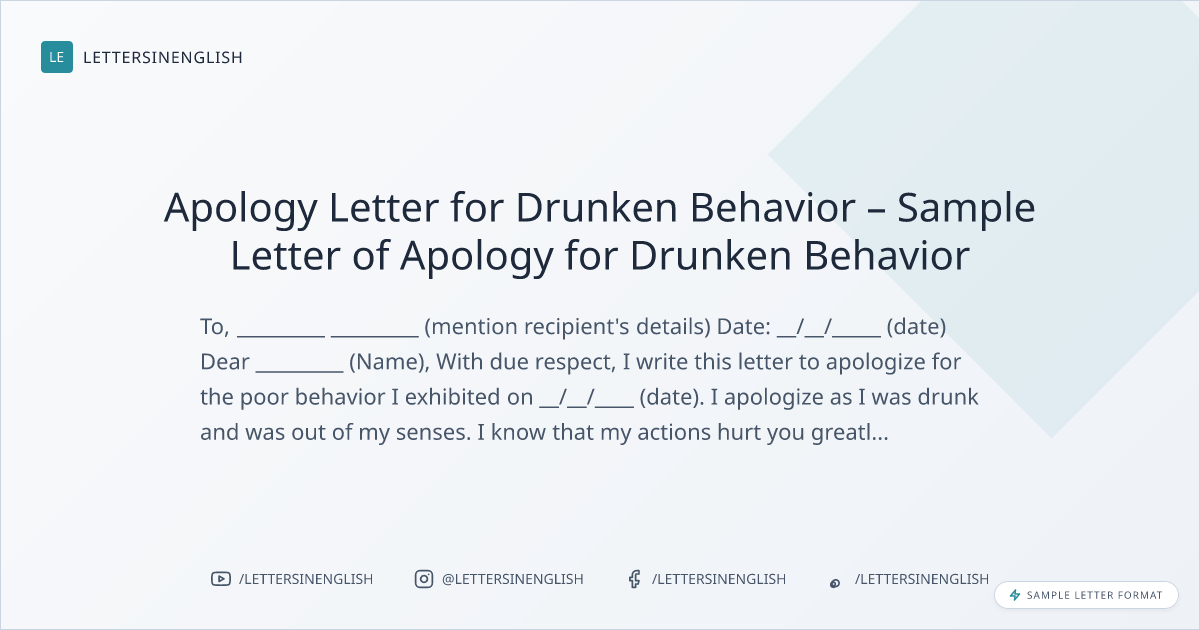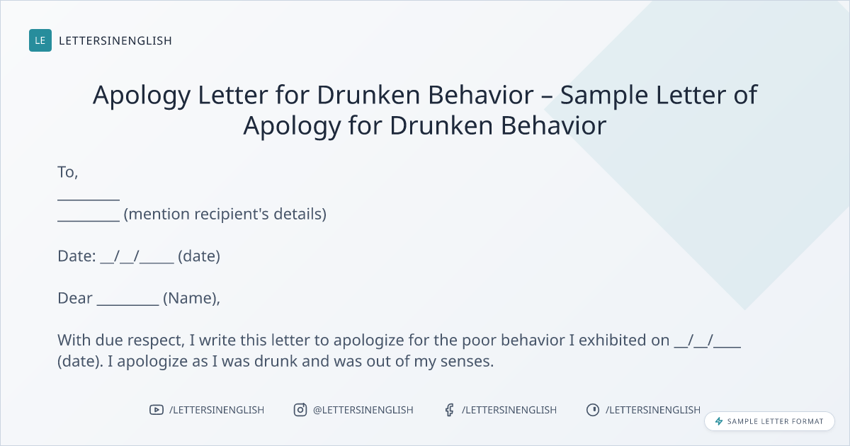 Apology Letter for Drunken Behavior – Sample Letter of Apology for Drunken Behavior