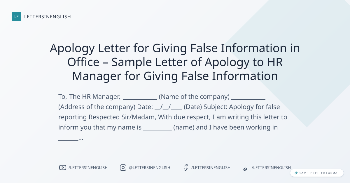 Apology Letter for Giving False Information in Office – Sample Letter of Apology to HR Manager for Giving False Information