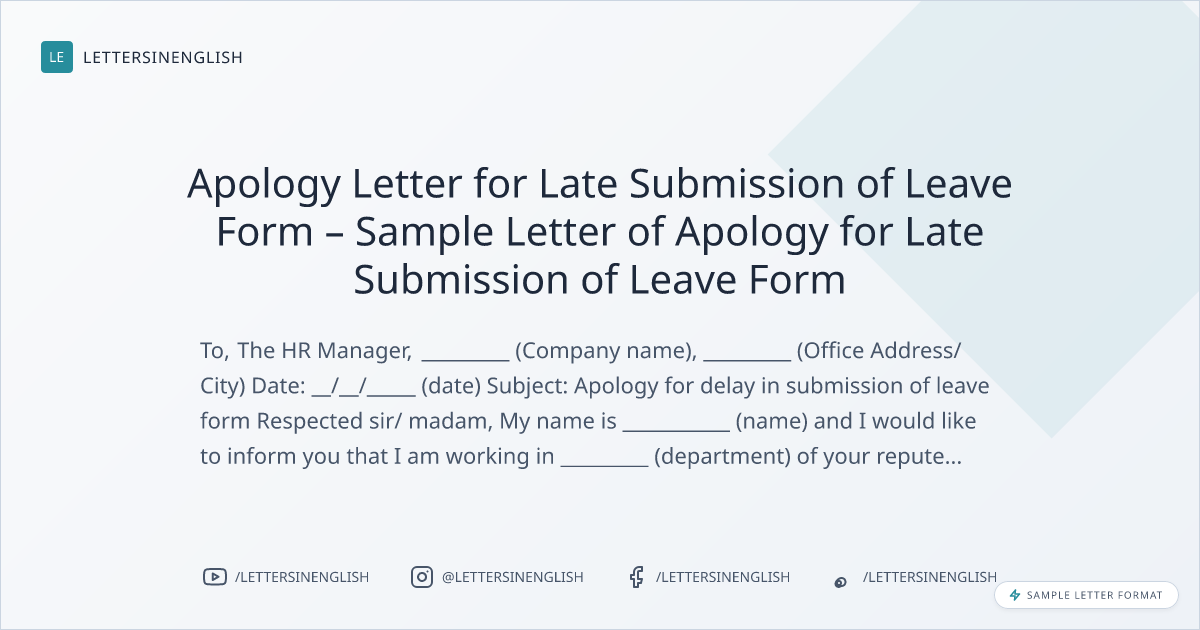 Apology Letter for Late Submission of Leave Form – Sample Letter of Apology for Late Submission of Leave Form