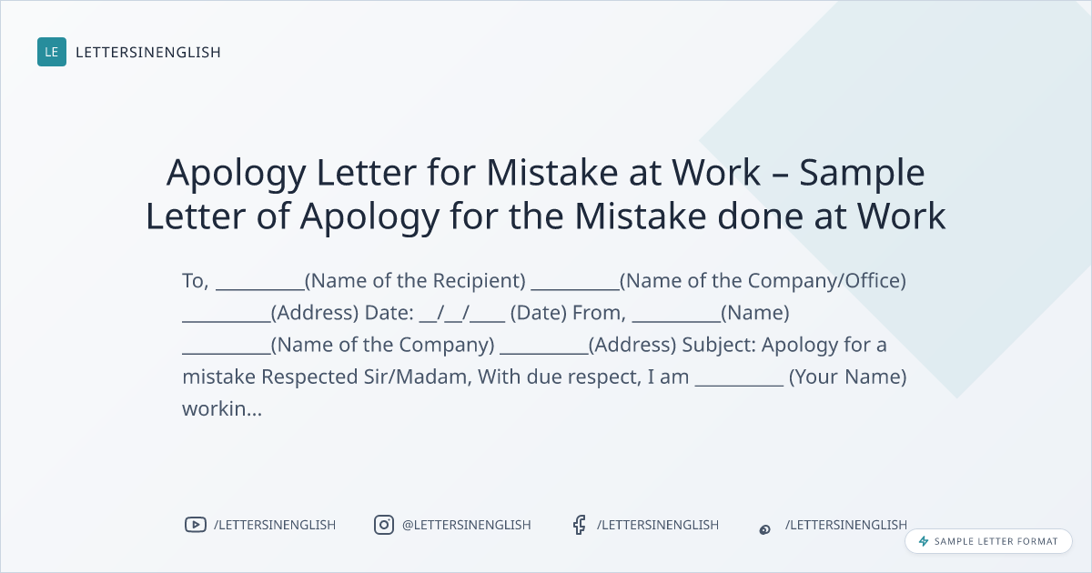 Apology Letter for Mistake at Work – Sample Letter of Apology for the Mistake done at Work