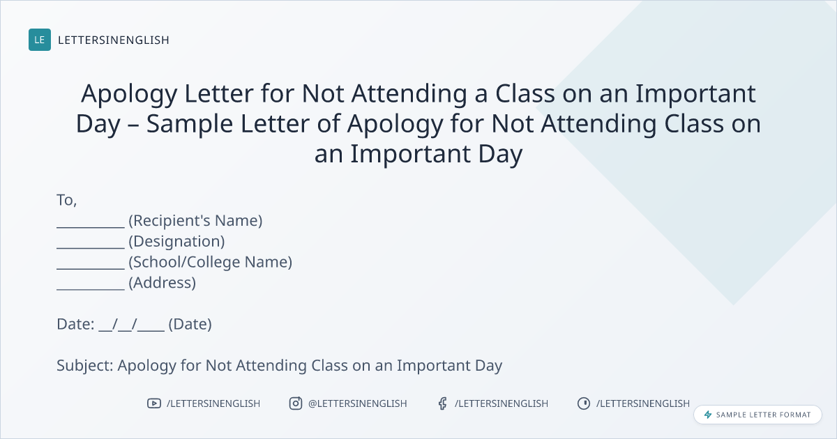 Apology Letter for Not Attending a Class on an Important Day – Sample Letter of Apology for Not Attending Class on an Important Day