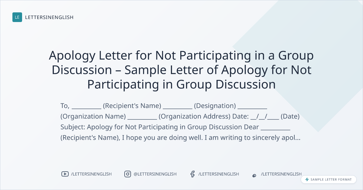 Apology Letter for Not Participating in a Group Discussion – Sample Letter of Apology for Not Participating in Group Discussion