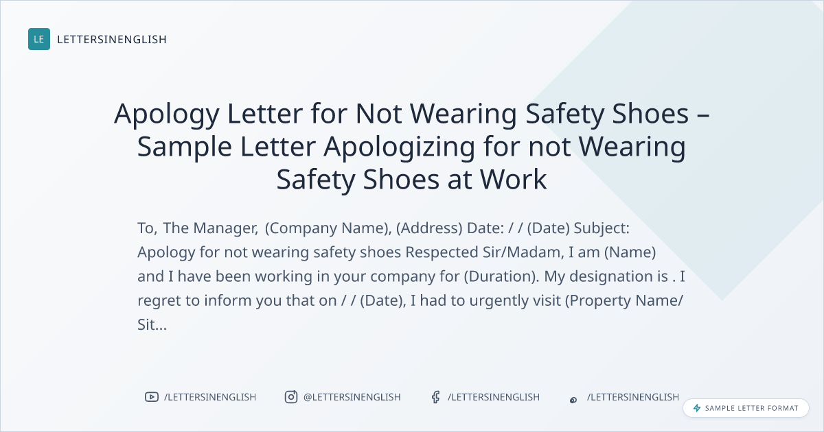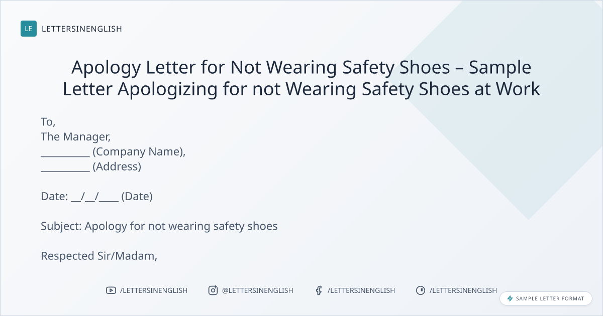 Apology Letter for Not Wearing Safety Shoes – Sample Letter Apologizing for not Wearing Safety Shoes at Work