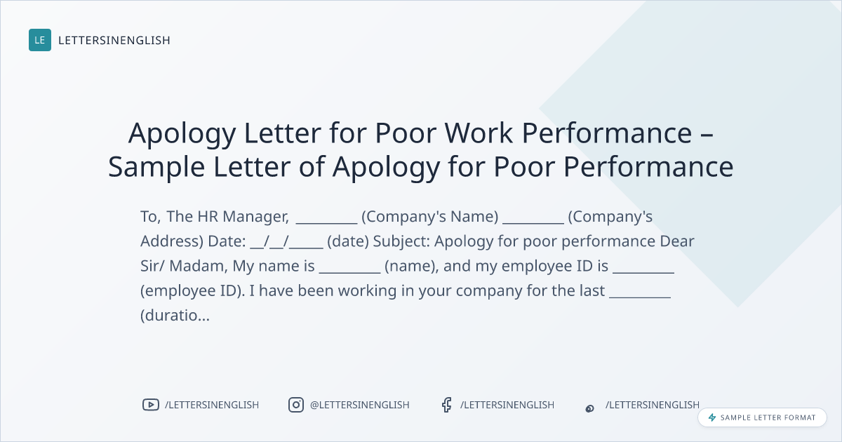 Apology Letter for Poor Work Performance – Sample Letter of Apology for Poor Performance