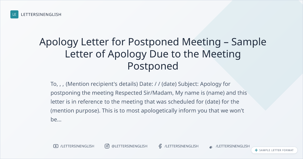 Sample Apology Letter for Postponed Meeting