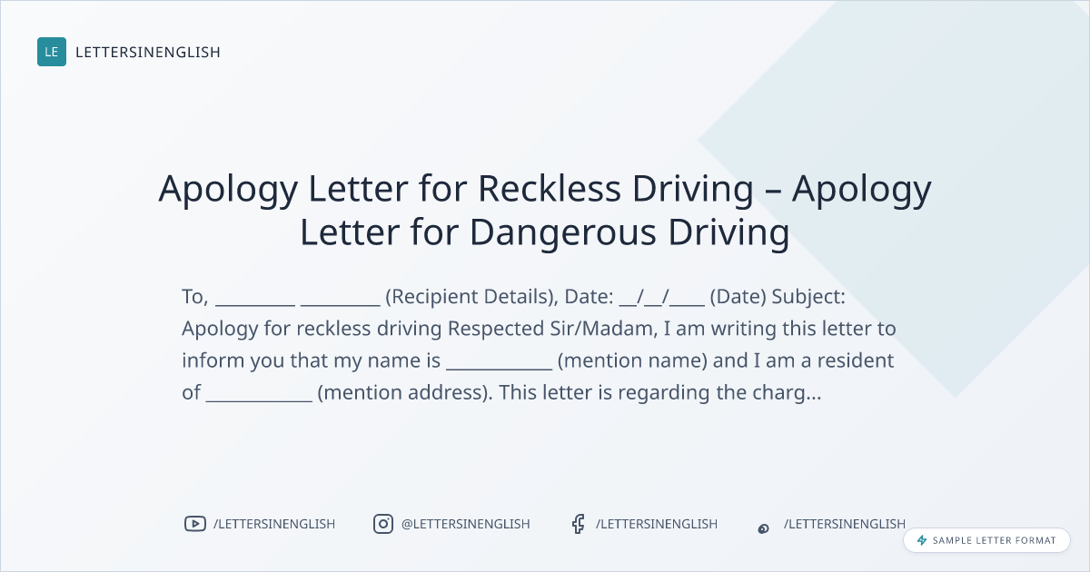 Apology Letter for Reckless Driving – Apology Letter for Dangerous Driving