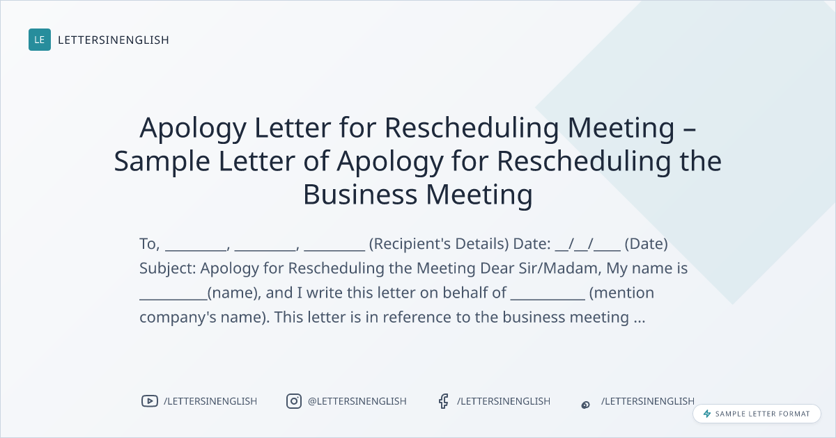 Apology Letter for Rescheduling Meeting – Sample Letter of Apology for Rescheduling the Business Meeting