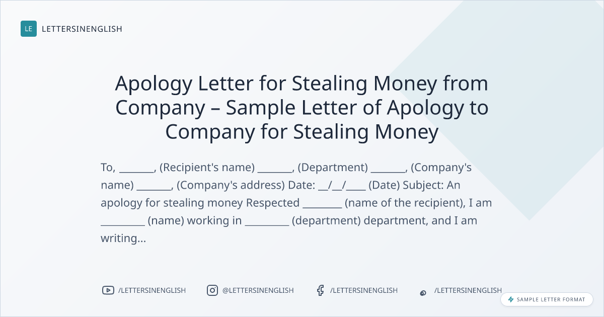 Apology Letter for Stealing Money from Company – Sample Letter of Apology to Company for Stealing Money