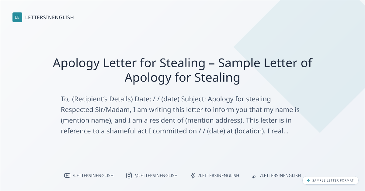 Apology Letter for Stealing – Sample Letter of Apology for Stealing