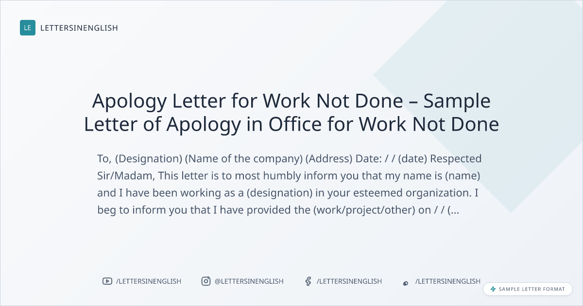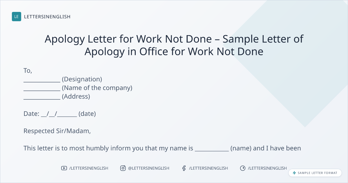 Apology Letter for Work Not Done – Sample Letter of Apology in Office for Work Not Done