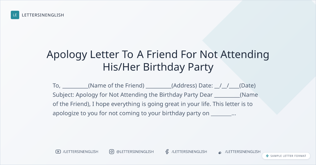 Apology Letter To A Friend For Not Attending His/Her Birthday Party