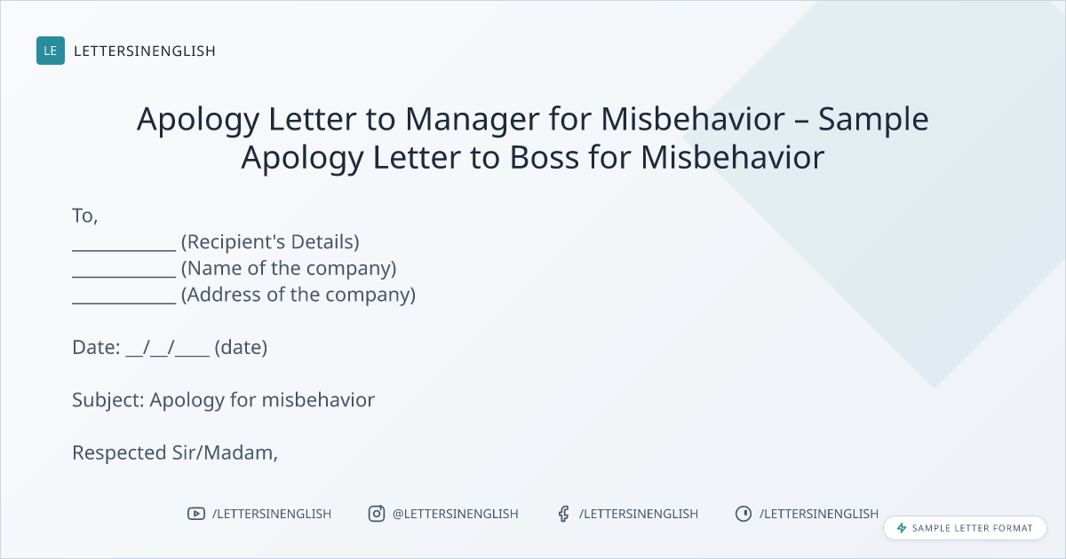 Apology Letter to Manager for Misbehavior – Sample Apology Letter to Boss for Misbehavior