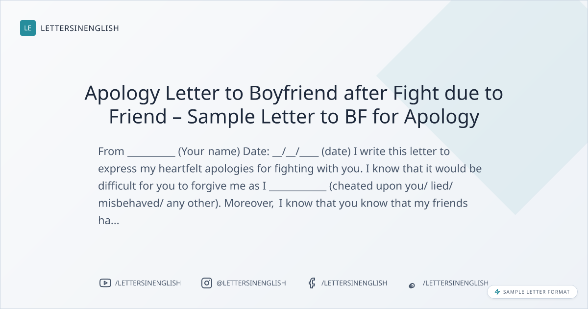 Apology Letter to Boyfriend after Fight due to Friend – Sample Letter to BF for Apology