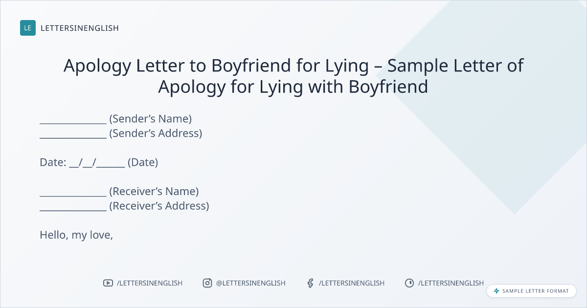 Apology Letter to Boyfriend for Lying – Sample Letter of Apology for Lying with Boyfriend
