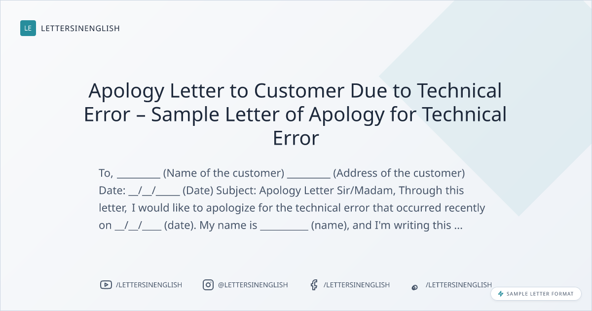 Apology Letter to Customer Due to Technical Error – Sample Letter of Apology for Technical Error