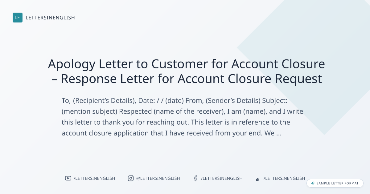 Apology Letter to Customer for Account Closure – Response Letter for Account Closure Request