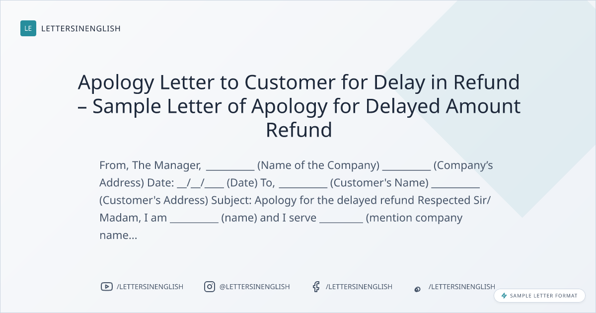 Apology Letter to Customer for Delay in Refund – Sample Letter of Apology for Delayed Amount Refund
