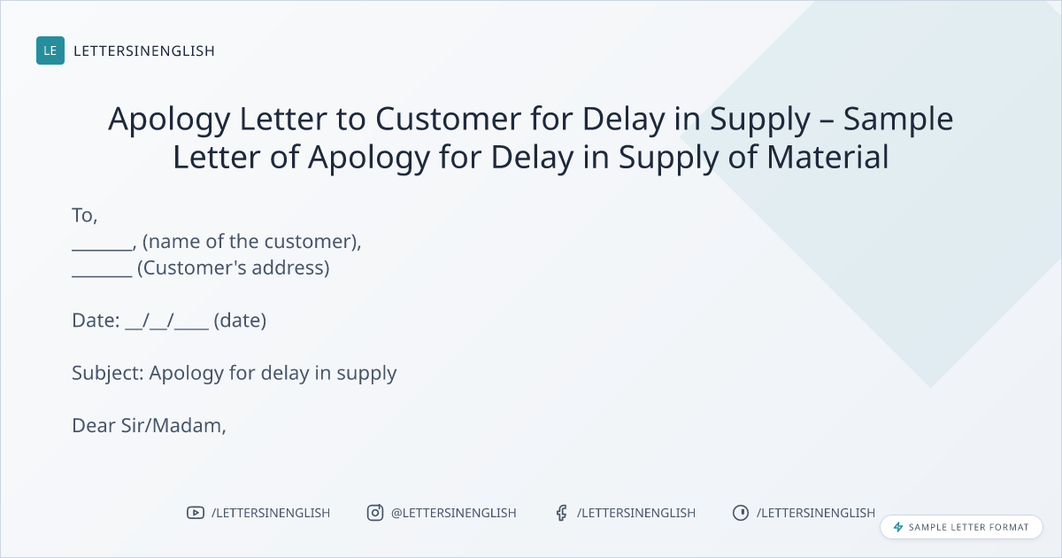 Apology Letter to Customer for Delay in Supply – Sample Letter of Apology for Delay in Supply of Material