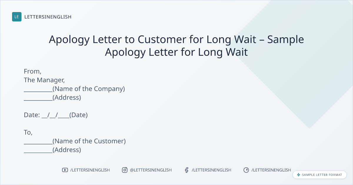 Apology Letter to Customer for Long Wait – Sample Apology Letter for Long Wait