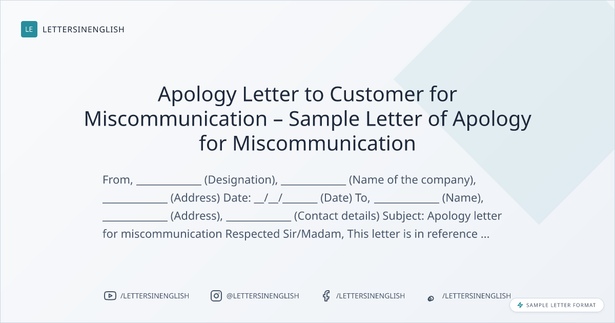 Apology Letter to Customer for Miscommunication – Sample Letter of Apology for Miscommunication