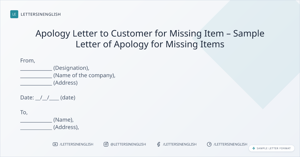 Apology Letter to Customer for Missing Item – Sample Letter of Apology for Missing Items