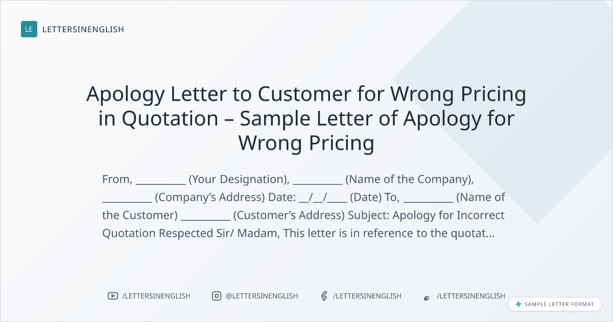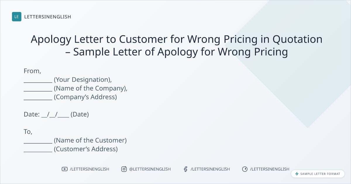 Apology Letter to Customer for Wrong Pricing in Quotation – Sample Letter of Apology for Wrong Pricing