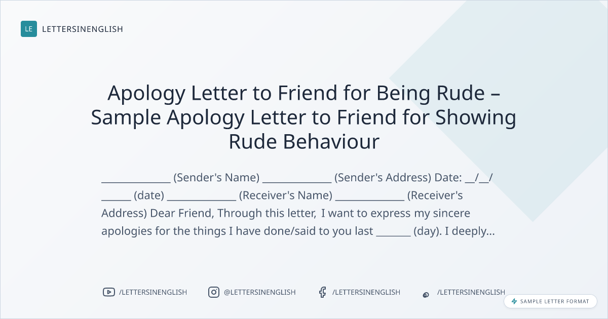 Apology Letter to Friend for Being Rude – Sample Apology Letter to Friend for Showing Rude Behaviour