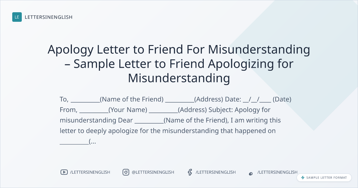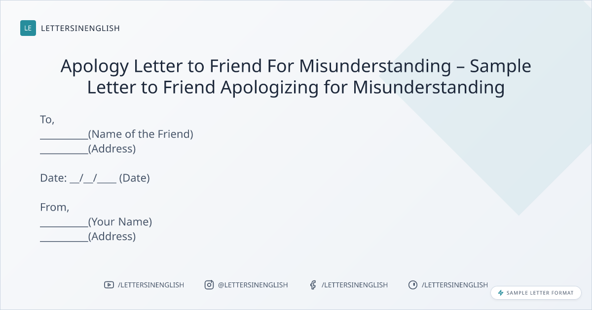 Apology Letter to Friend For Misunderstanding – Sample Letter to Friend Apologizing for Misunderstanding